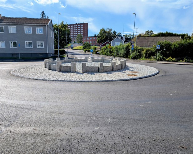 Bild på den färdigställda cirkulationsplatsen. Foto: Kristinehamns kommun.