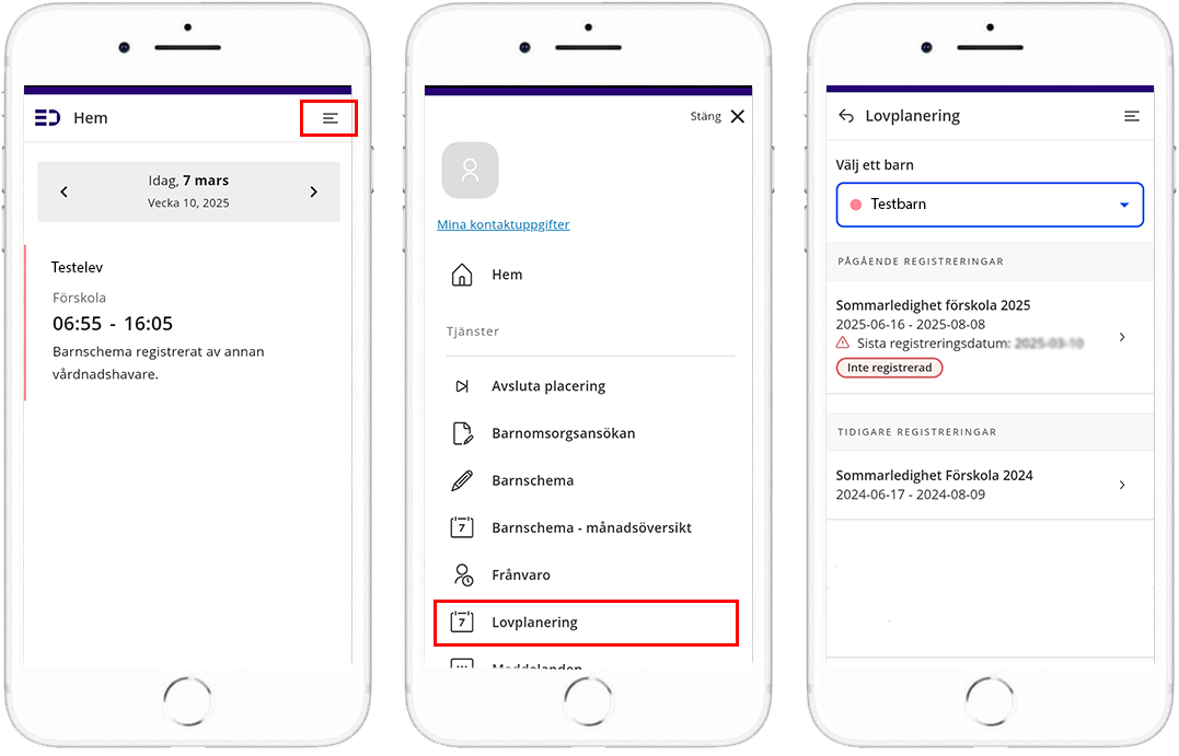 Öppna appen Edlevo och gå till Lovplanering i menyn.