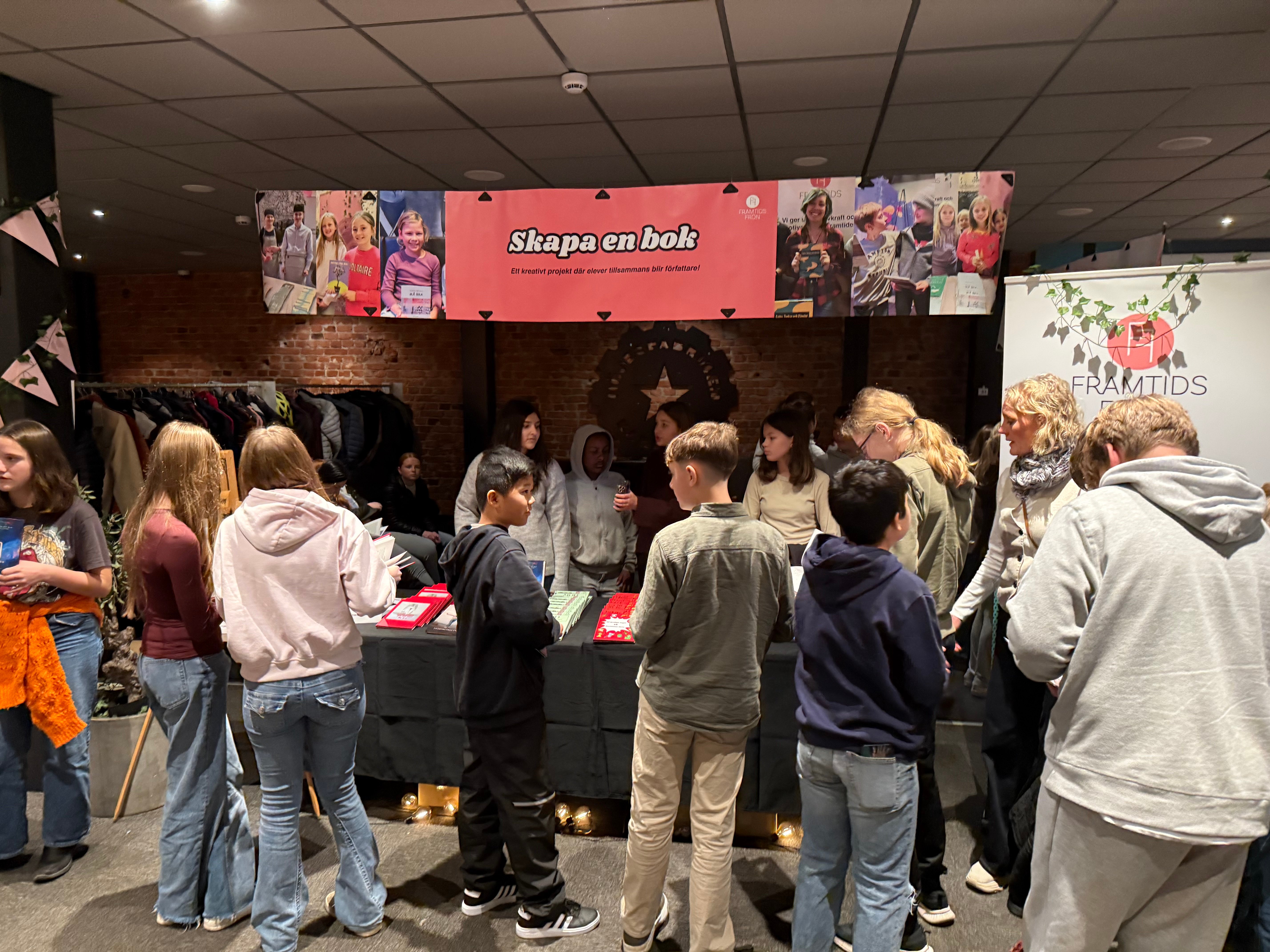Södermalmsskolans monter på bokfestivalen. Boken skrevs i samarbete med Framtidsfrön.