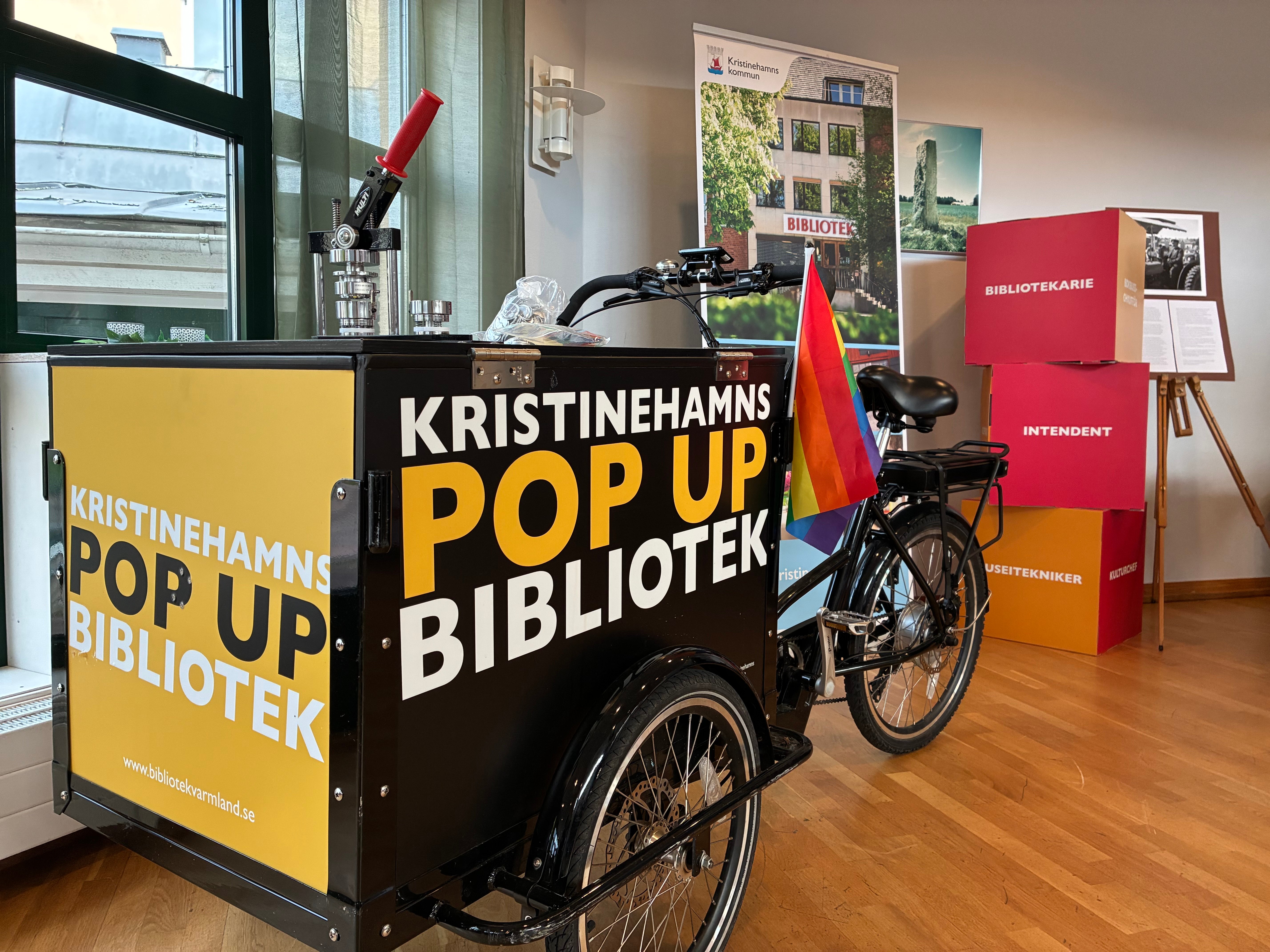 Kulturförvaltningen hade med sig sitt pop up bibliotek. Foto: Kristinehamns kommun.